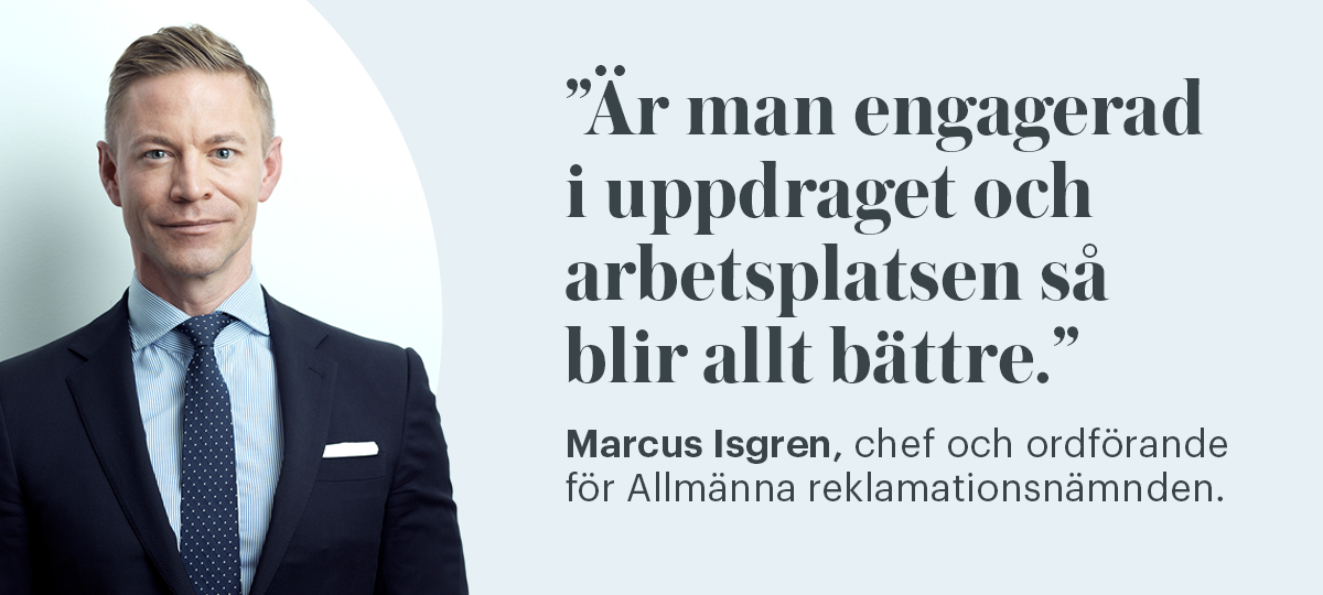 – Den hänger precis där alla passerar, går inte att missa. Man ser den varje gång man är på jobbet, säger Marcus Isgren, chef och ordförande för Allmänna reklamationsnämnden, ARN.